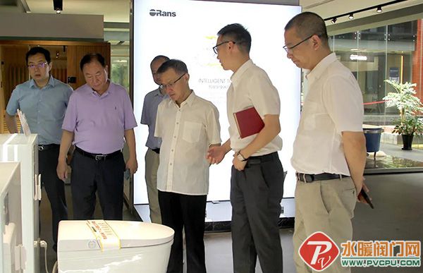 江辉会长一行首先参观了欧路莎国际化展厅,对欧路莎领先的研发、技术创新以及整体化卫浴解决方案高度好评。